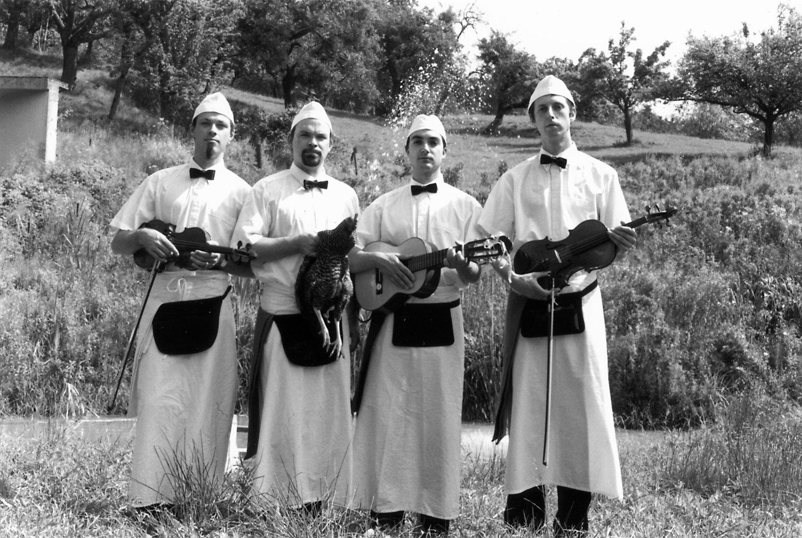 Man nehme vier junge, dynamische und bestausgebildete Musiker, lasse sie komponieren und arrangieren und heraus kommt ein Programm, das mit Klassik, Unterhaltung, Comedy und Jazz zu begeistern weiß. Die vier Oberkellner Gregor und Veit Hübner, Bernd Ruf und Karl Albrecht Fischer servieren musikalische Köstlichkeiten aus internationalen Kochtöpfen. ... (Offenburg, Dezember 2000)